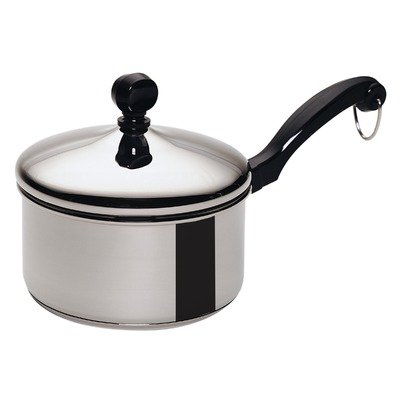 50000 - 1 QT COVERED SAUCEPAN - Here is the ideal size pan to heat a can of vegetables or warm a single serving of soup. Durable stainless steel gives you years of beauty. The "full cap" base has an aluminum core for even heating.
